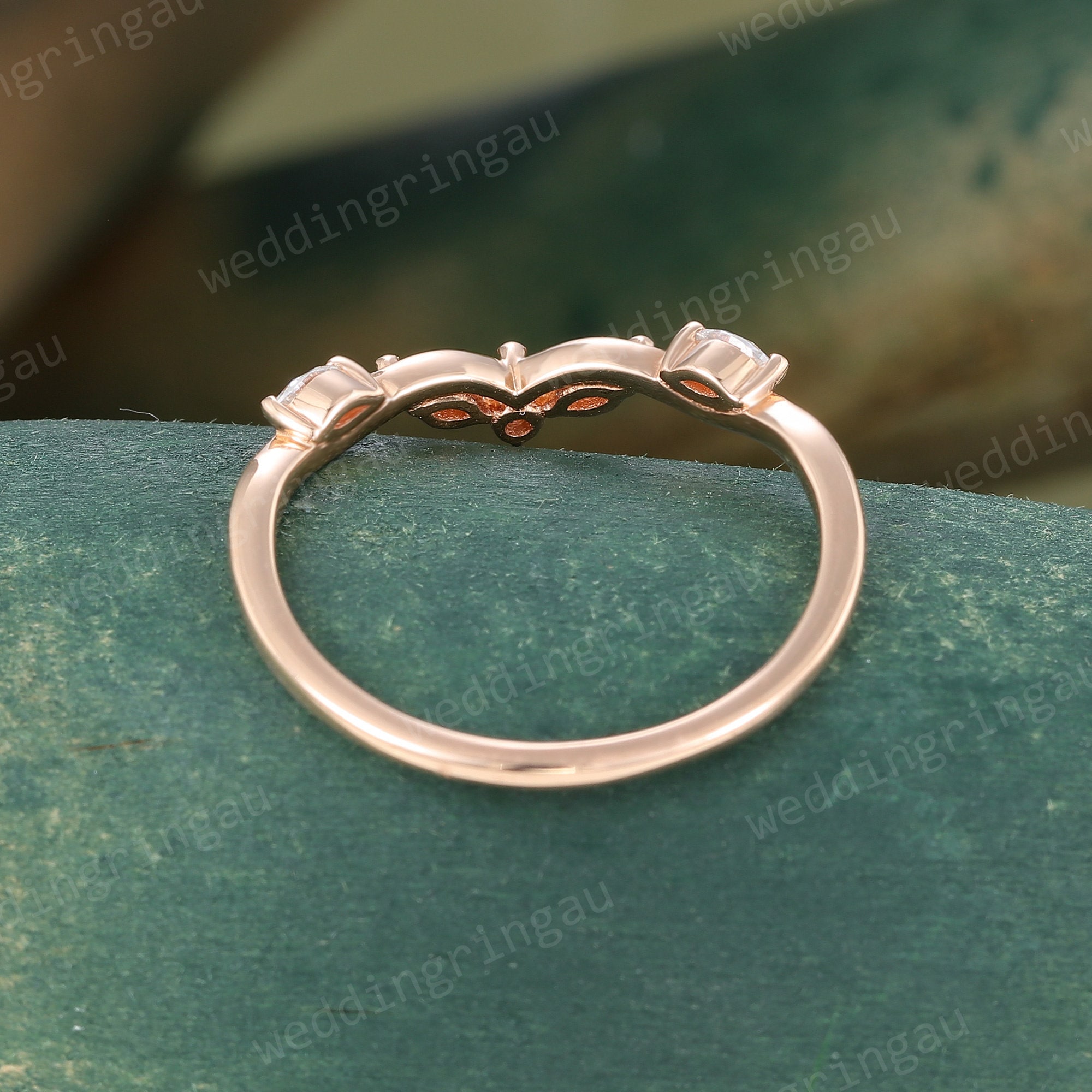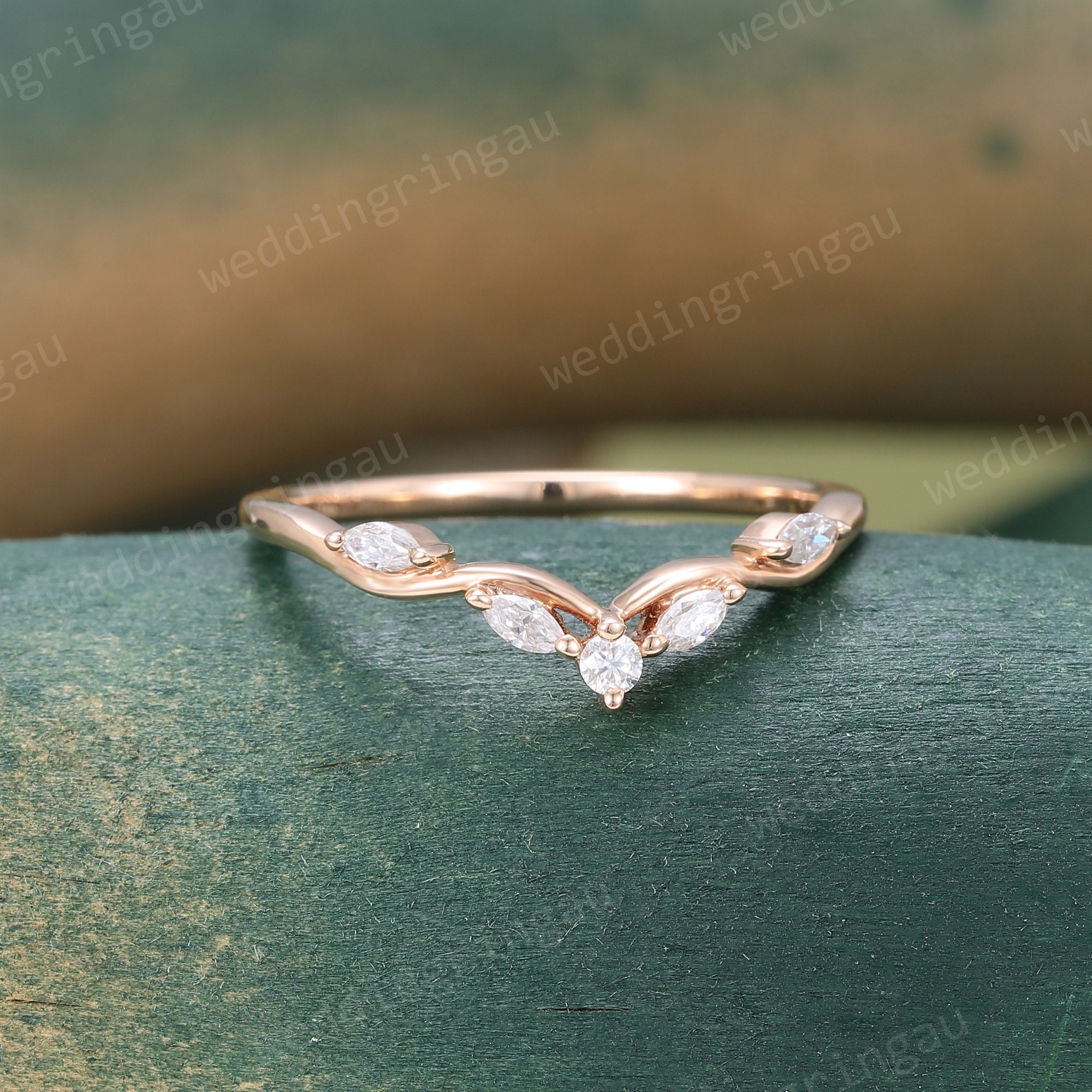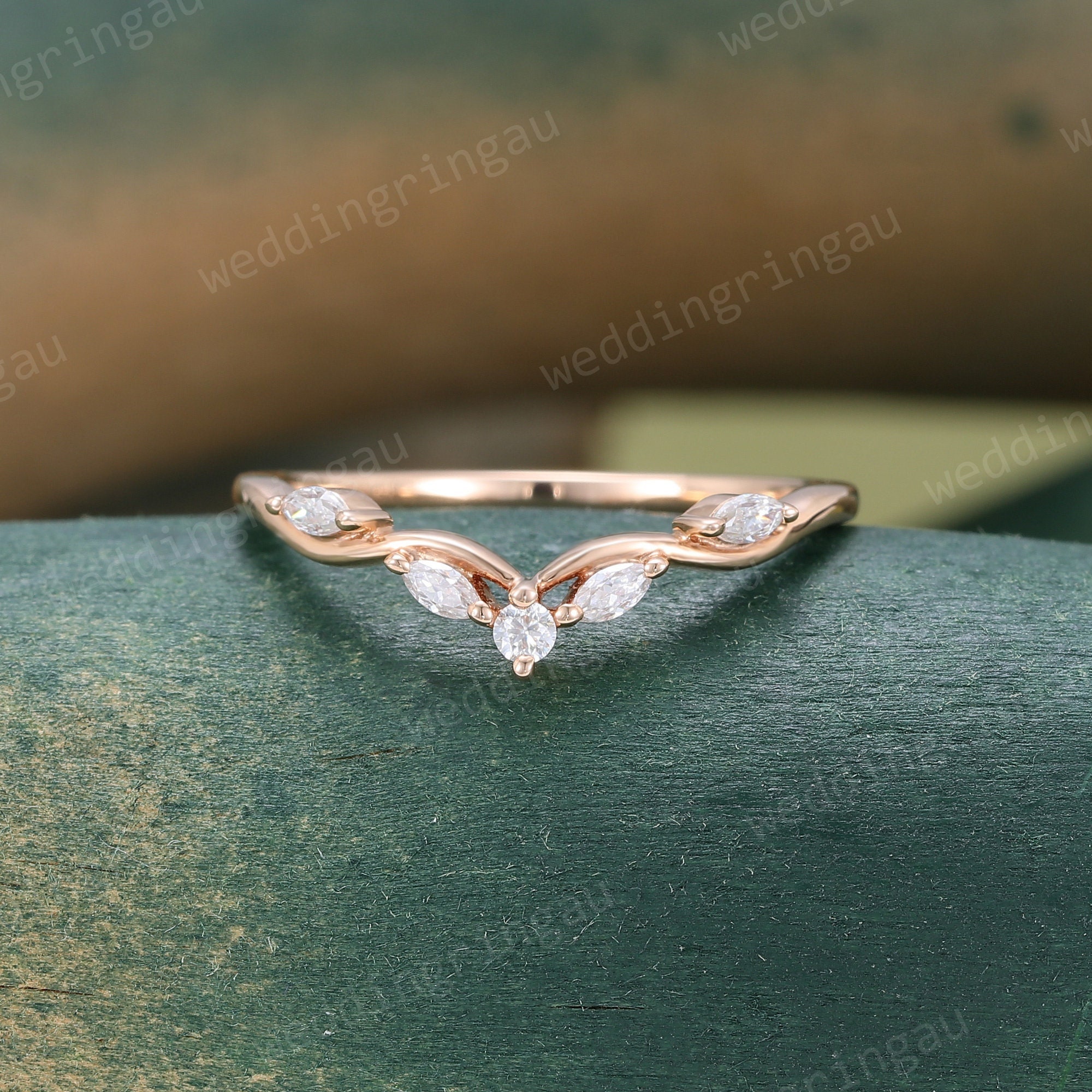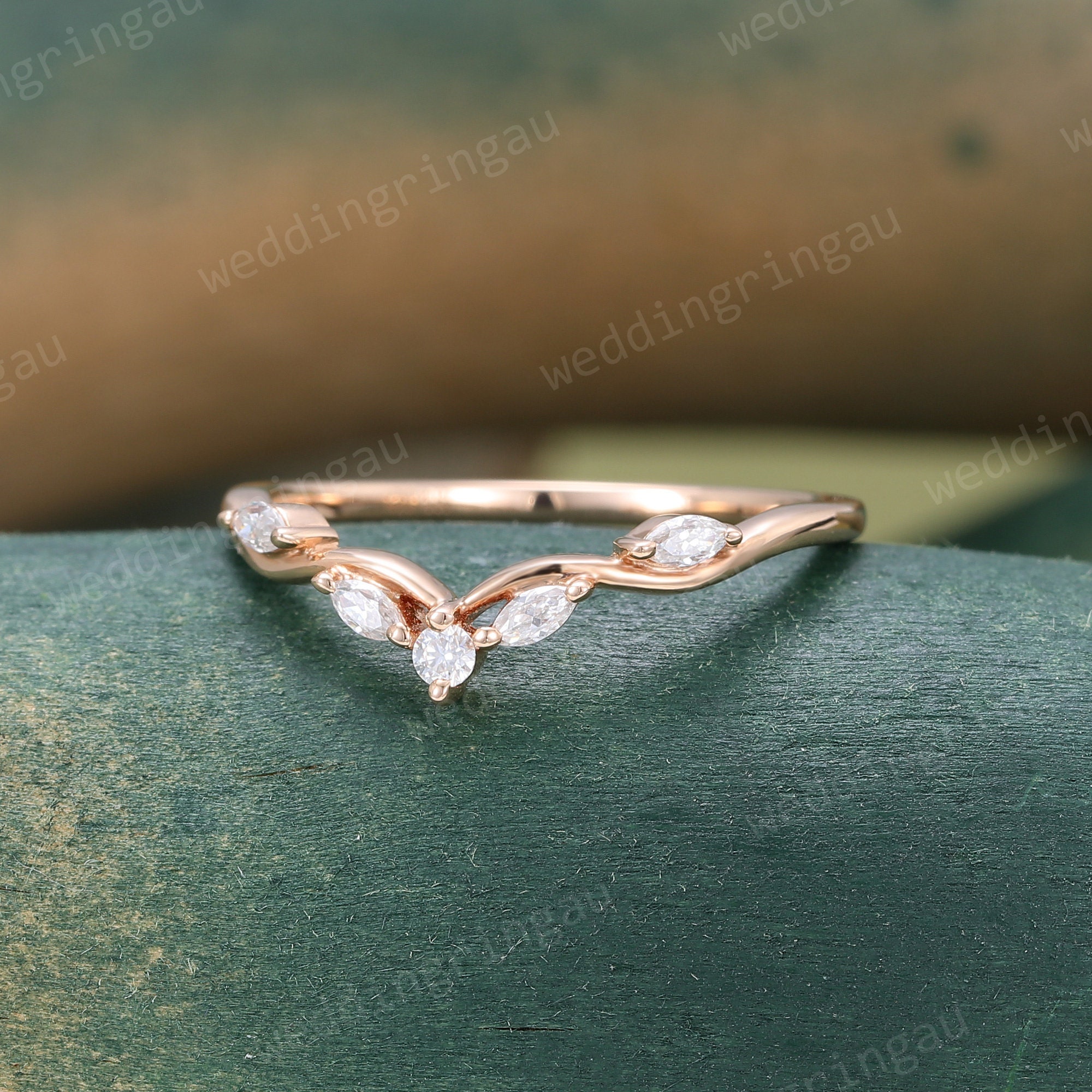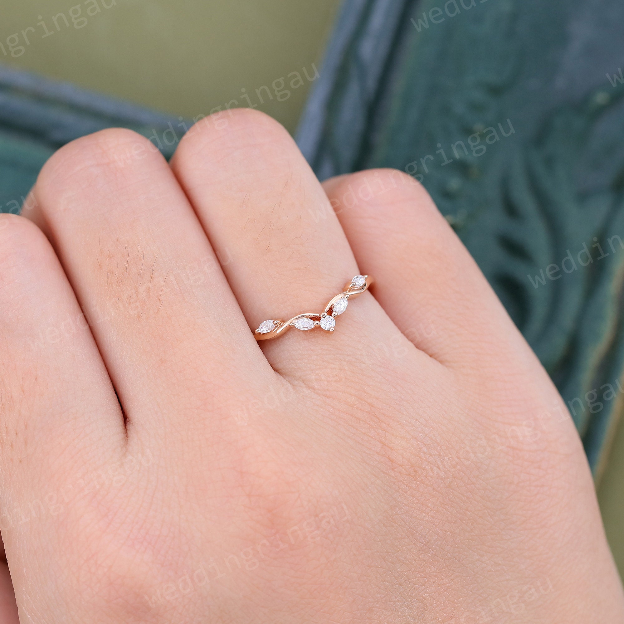 Curved moissanite wedding band women unique Vintage rose gold Marquise cut wedding band Branch art deco stacking matching band Anniversary