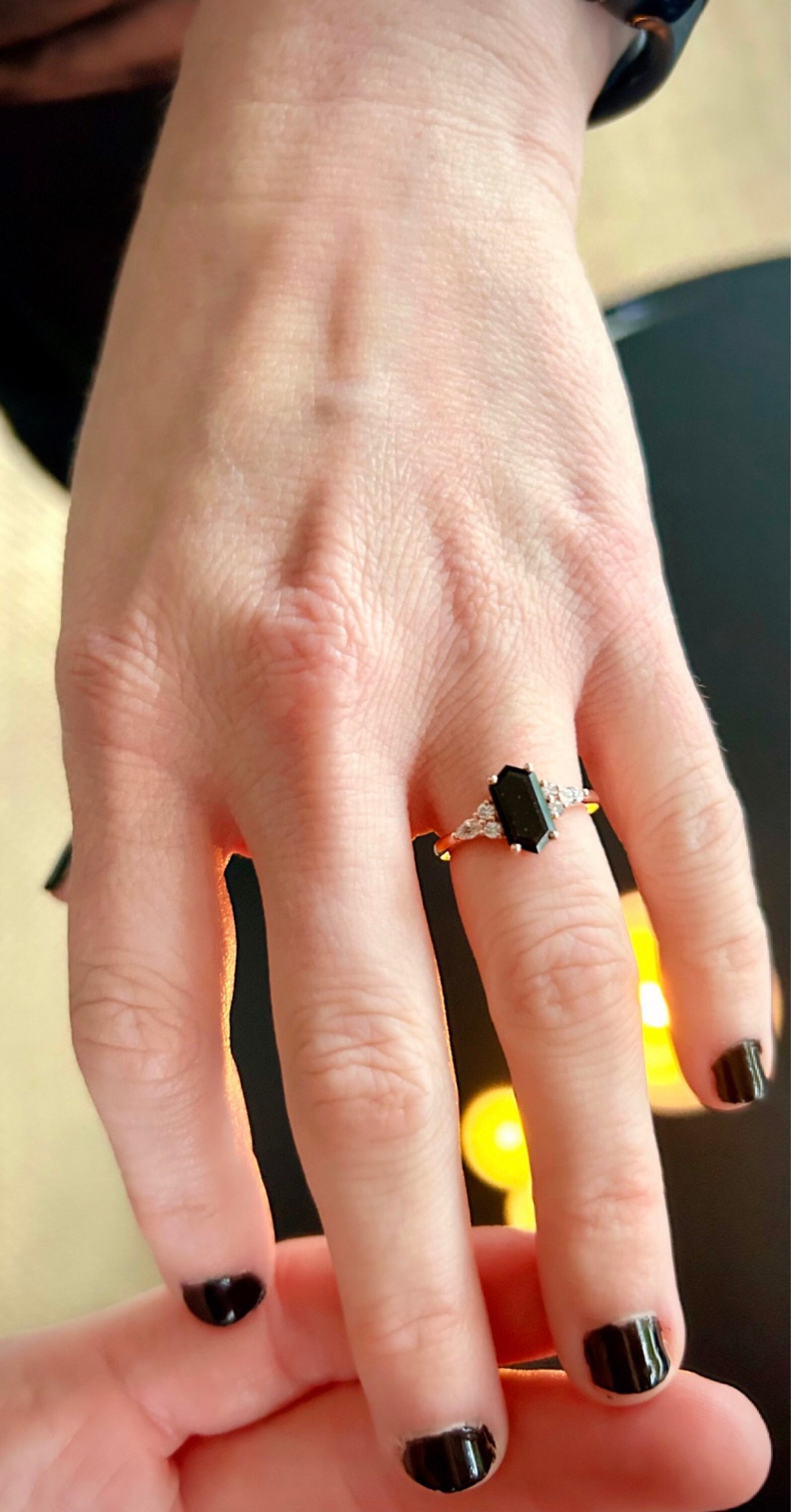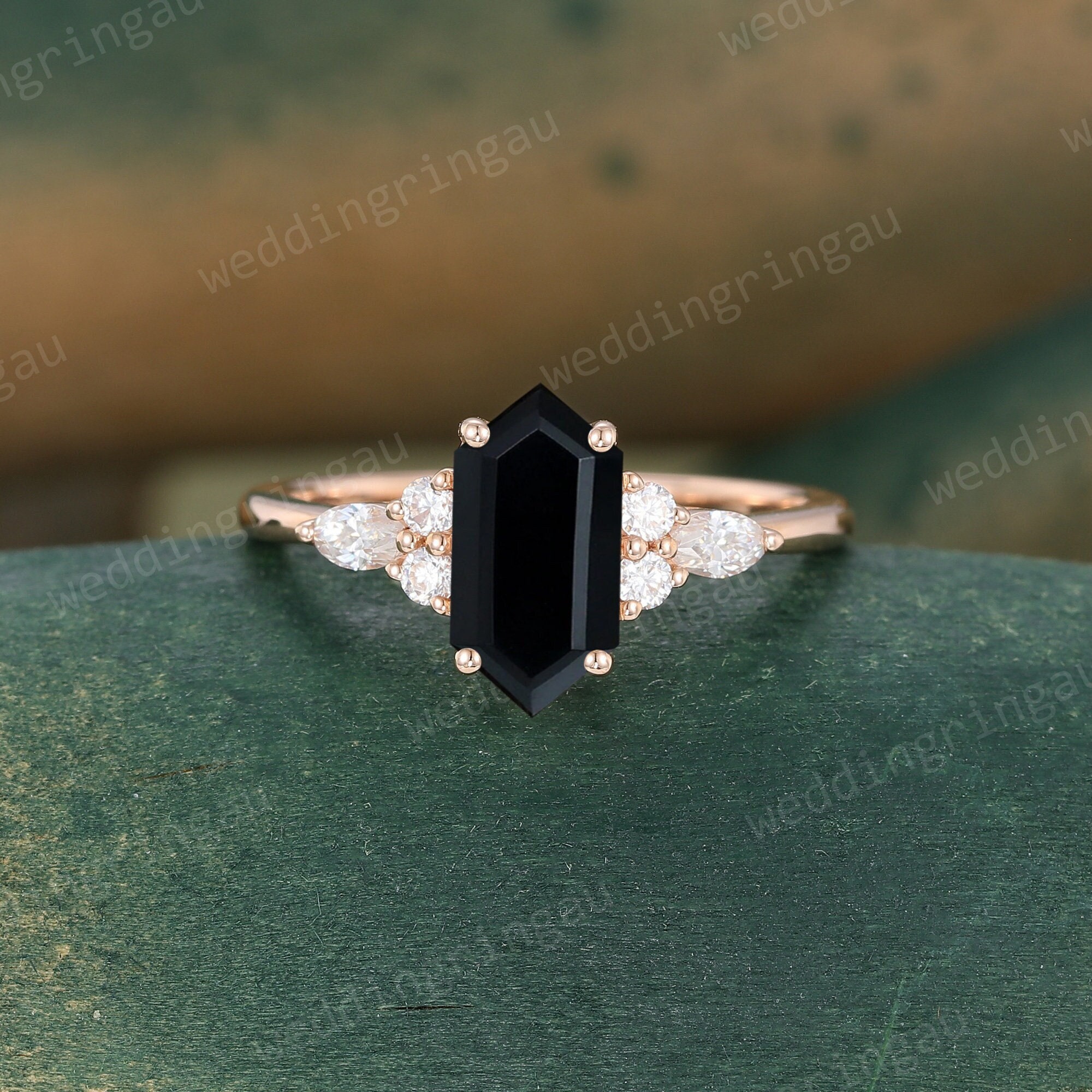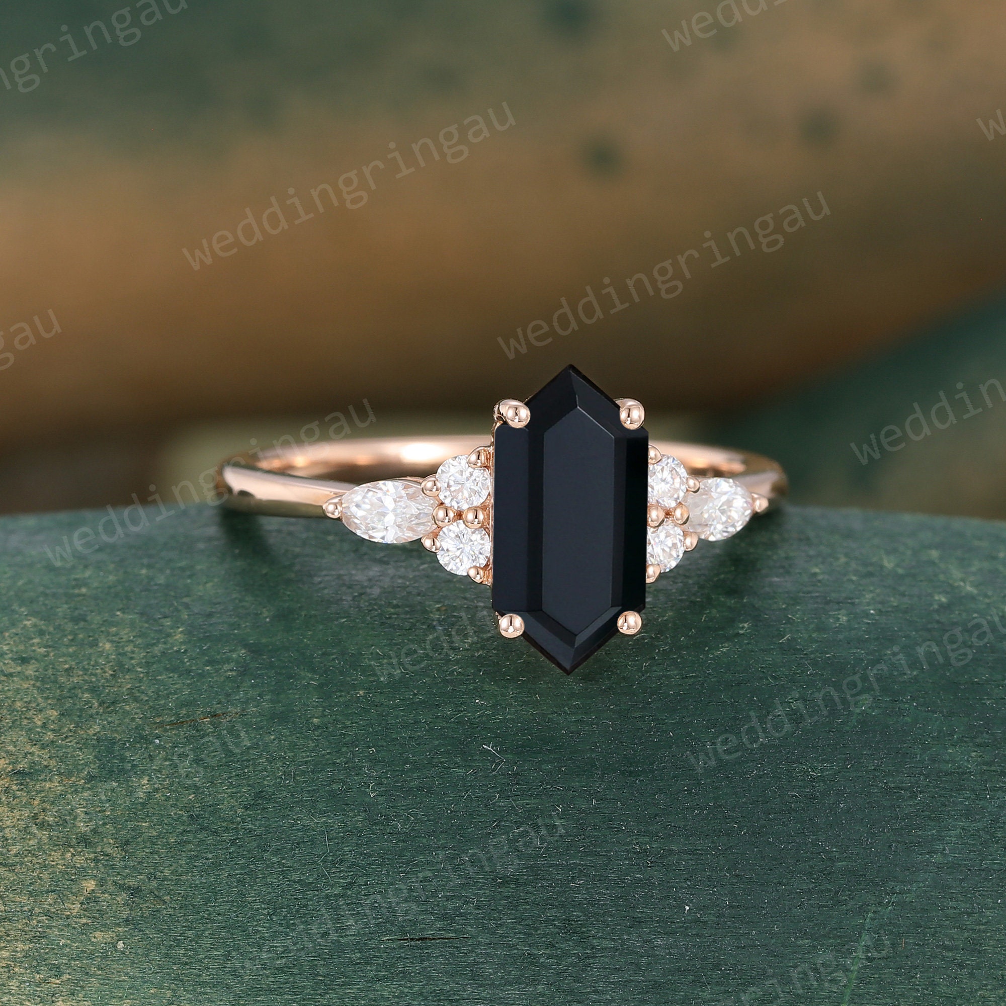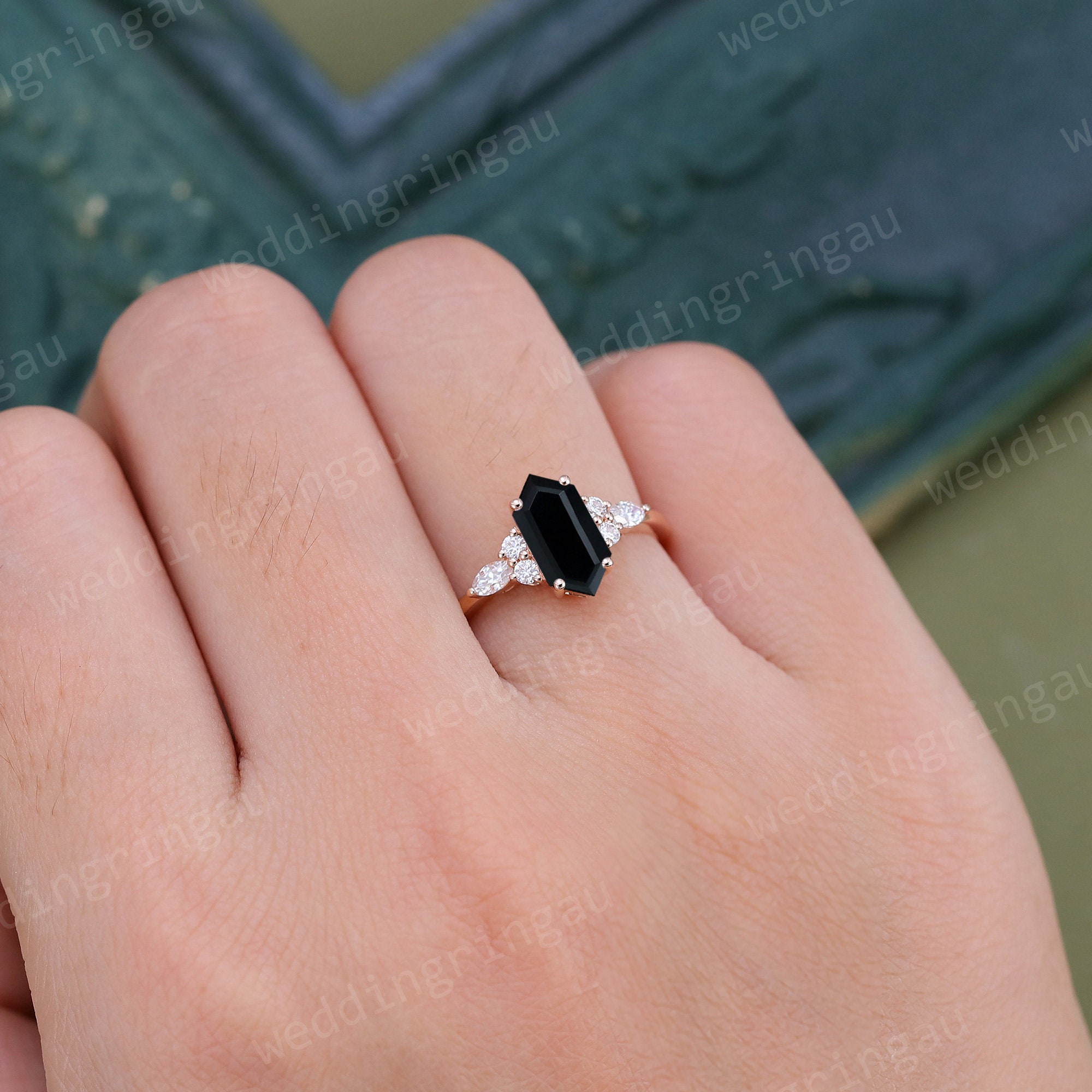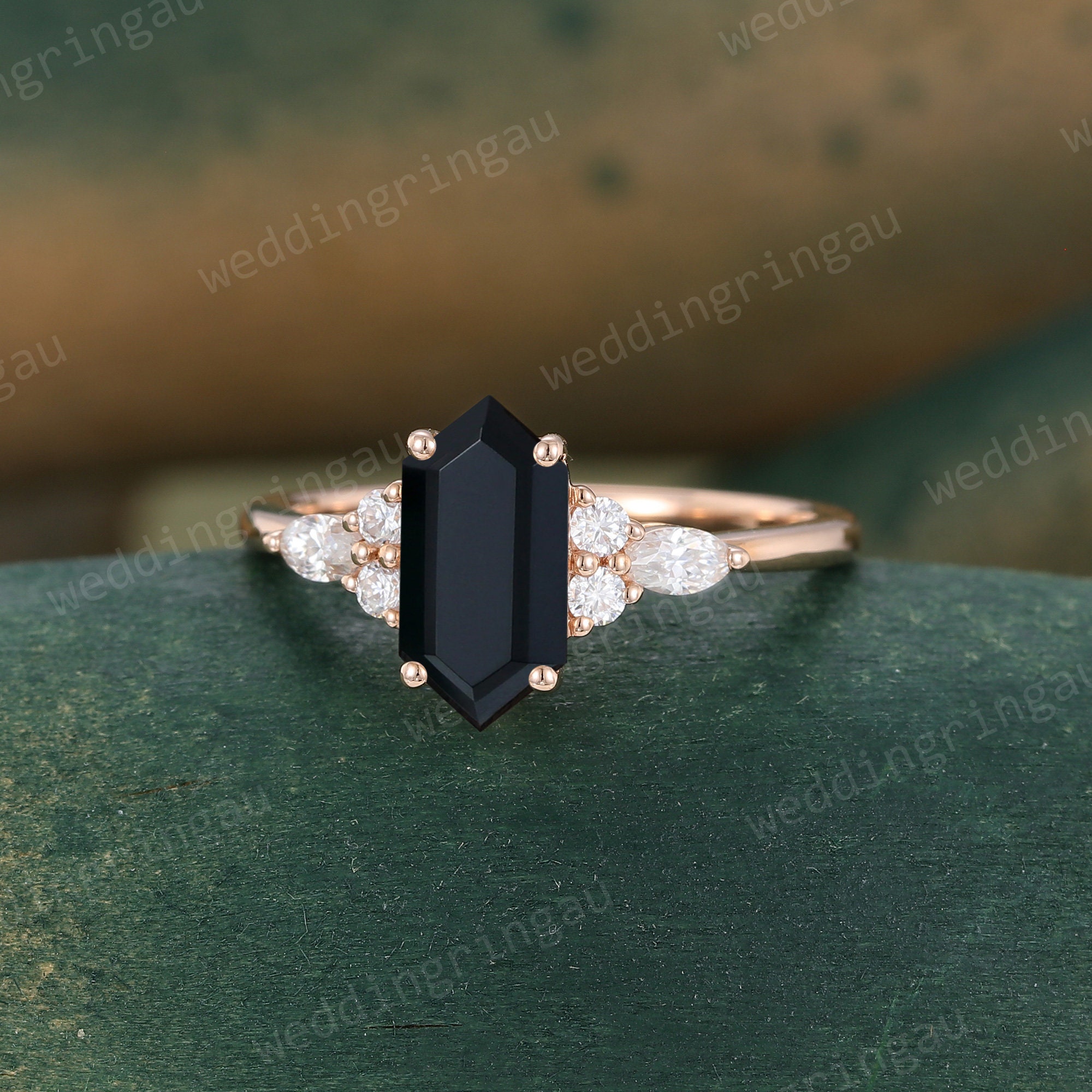 Black onyx engagement ring, Hexagon cut Black onyx ring, Black onyx ring for women, Marquise cut Moissanite ring, Black onyx promise ring