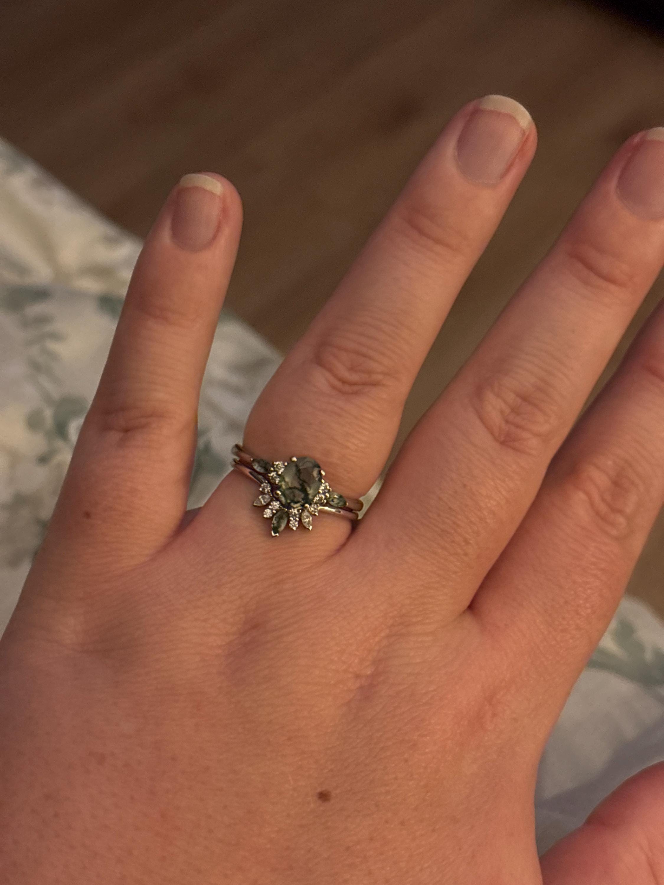 Absolutely gorgeous!! I am so impressed by the quality and structure of the ring, and it fit perfectly with my engagement ring! I will definitely be ordering from here again if I get another meaningful band in the future.