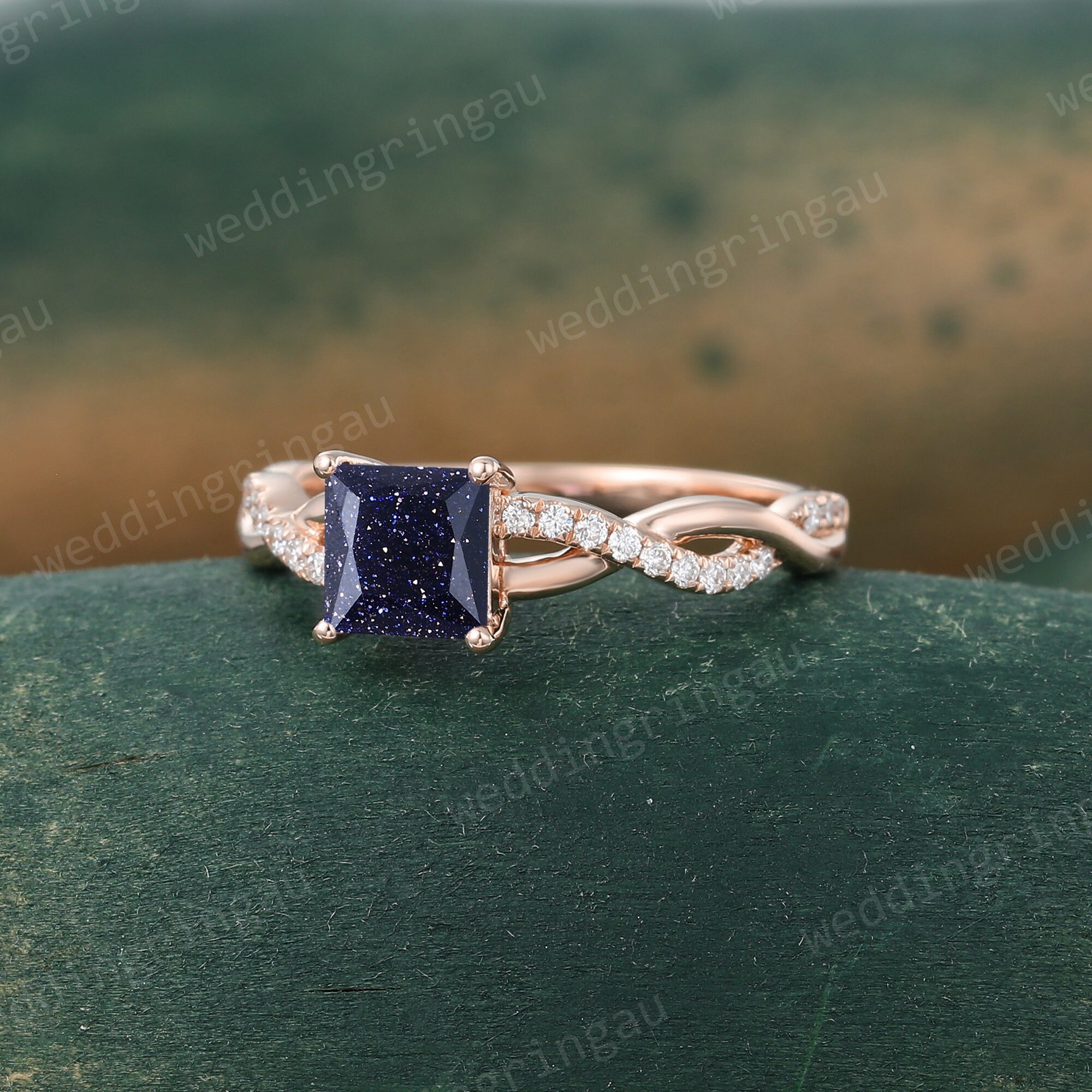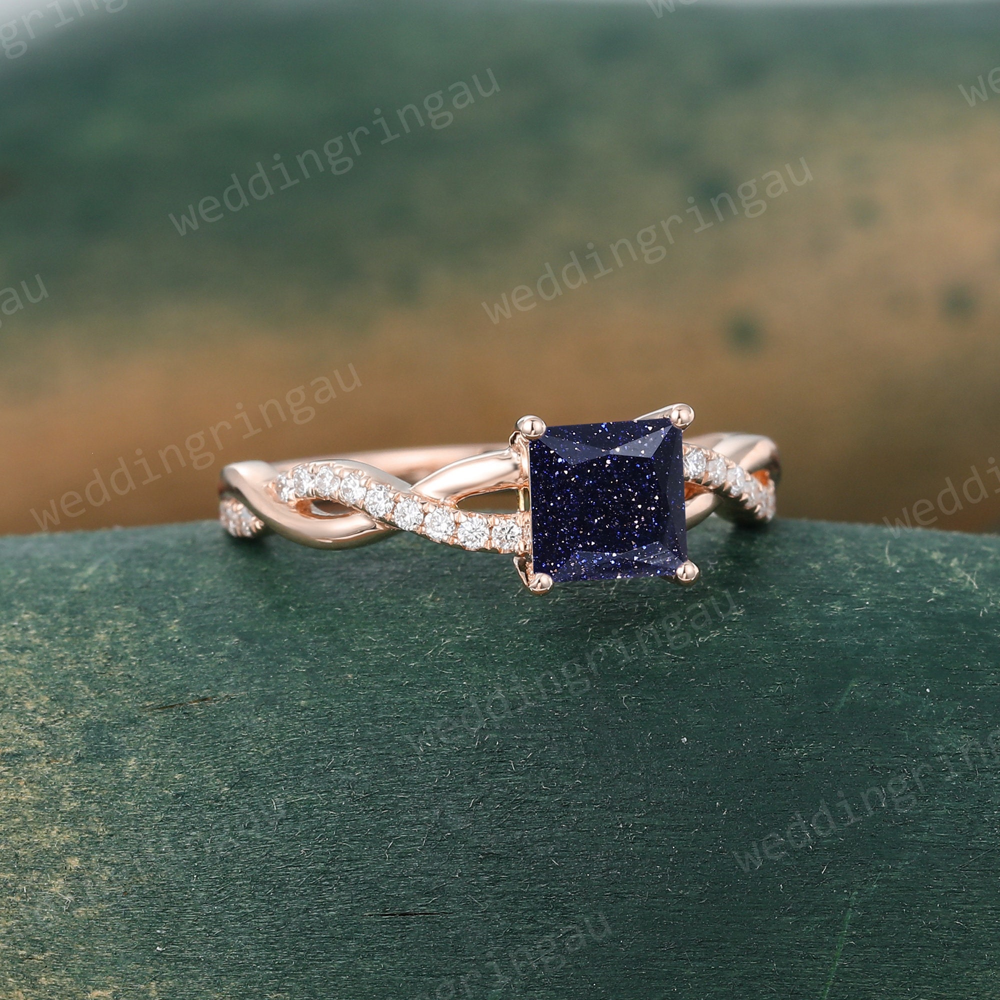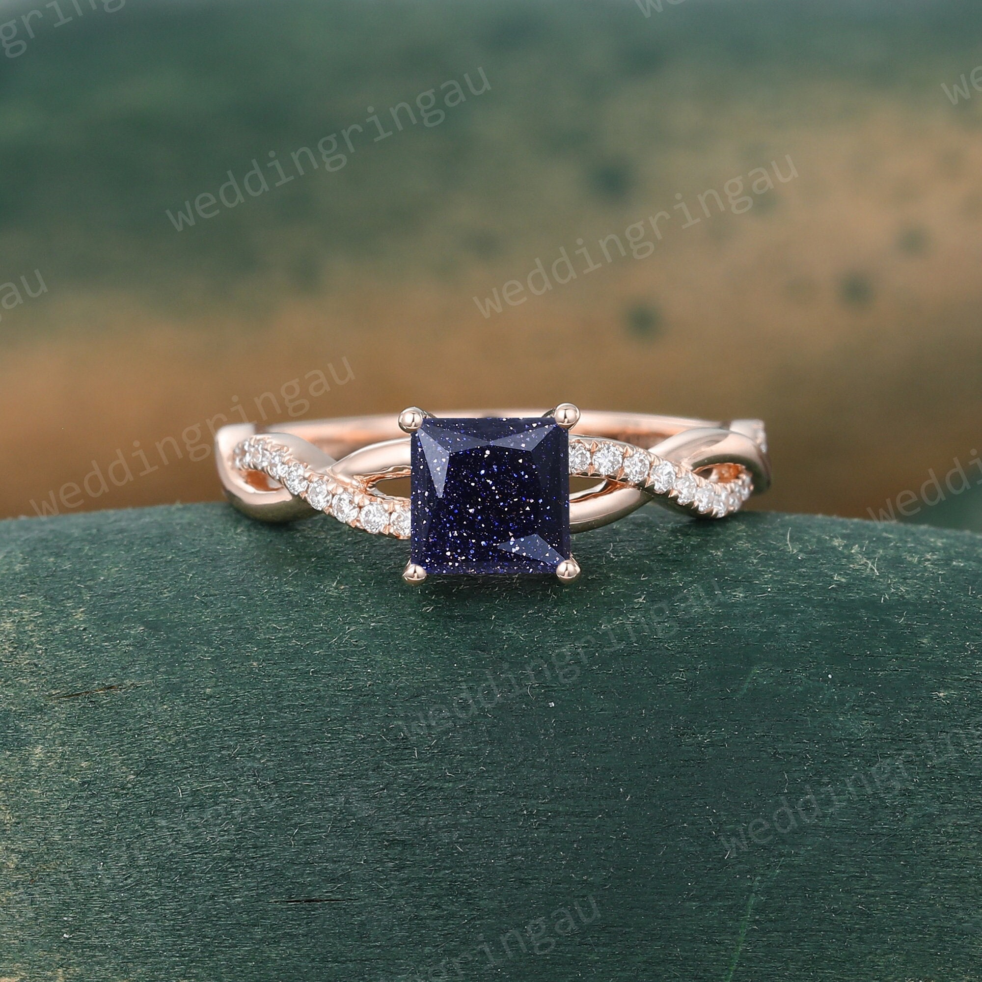 Princess cut Blue sandstone ring Vintage Rose gold engagement ring Moissanite Infinity ring Twisted Diamond ring anniversary ring for women