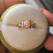 Kinda obsessed with it!!! I got it in 14K gold. The setting is high enough that the little leaves sit over my wedding band. Arrived a little sooner than the date. The amethyst stones are hard to see the purple but I still think it’s perfect.