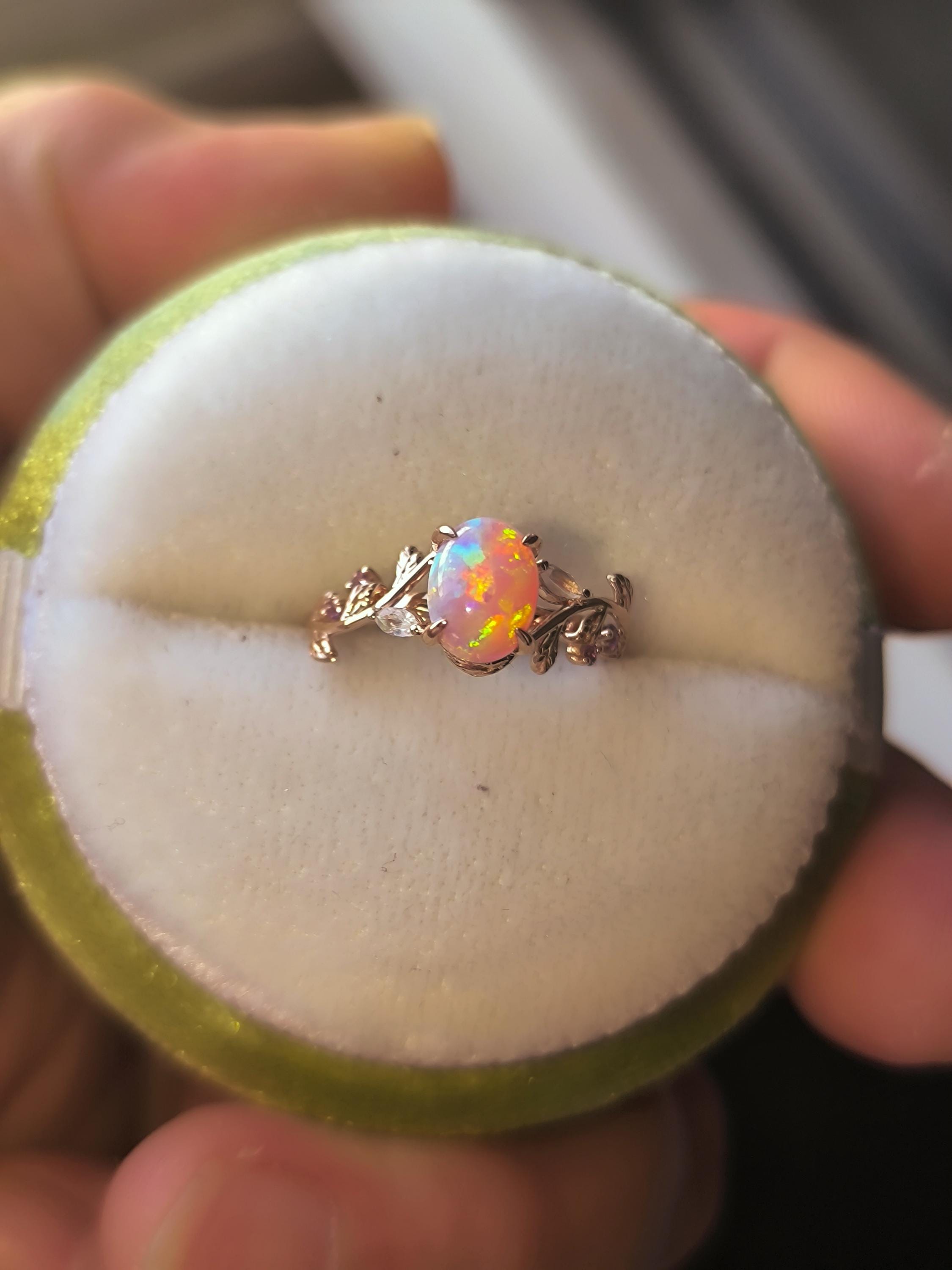Oval cut Pink Opal ring Unique Rose gold Leaf engagement ring Marquise cut Moonstone ring Amethyst ring Nature inspired Twig ring Gift