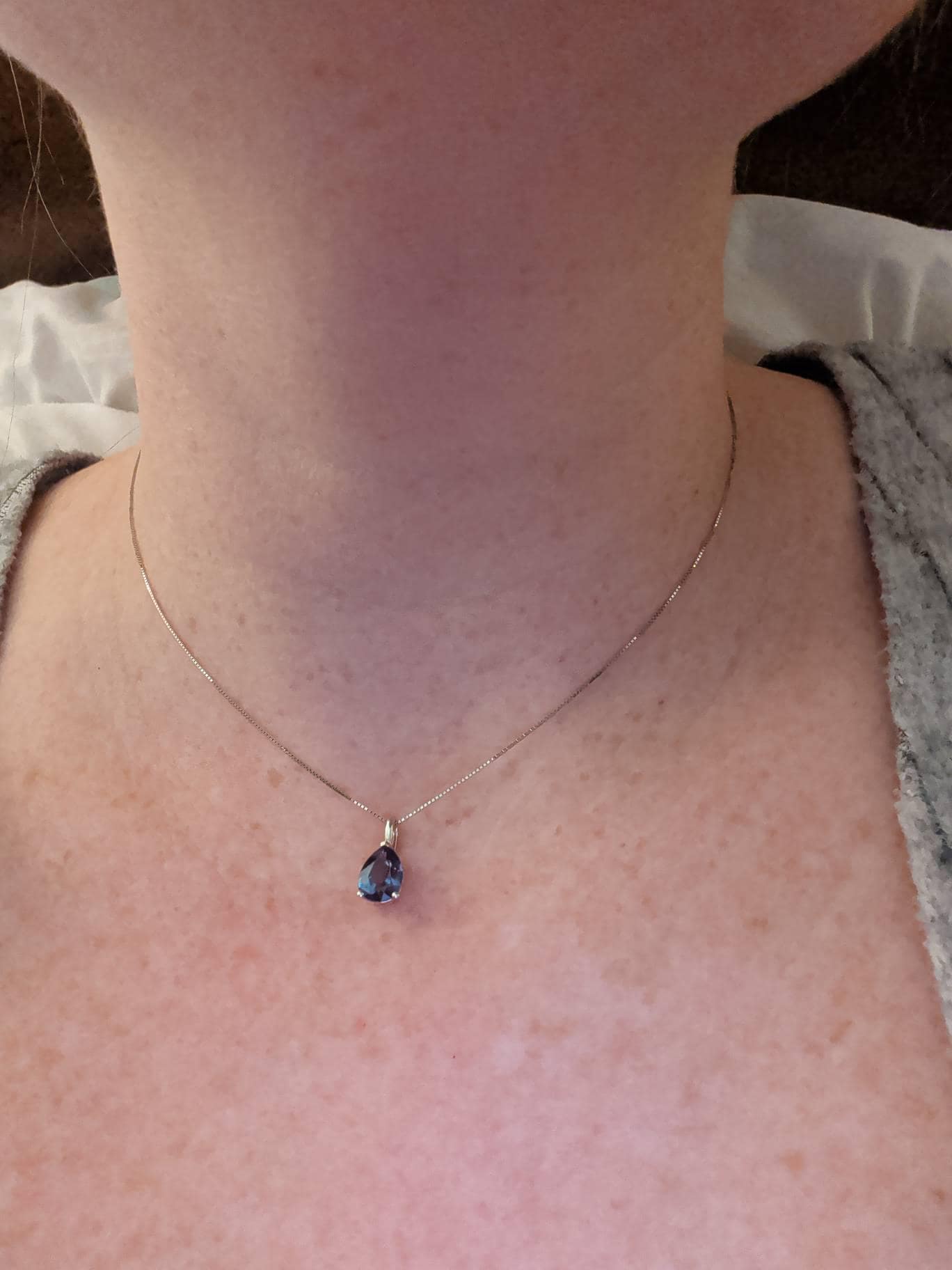 The person that wear it it's delighted by the pear shaped Alexandrite necklace, which change his colour as it should make in different lights. It's beautiful anyway. The customer service was all right and gave me support. Thank you, Mark from Weddingringau !