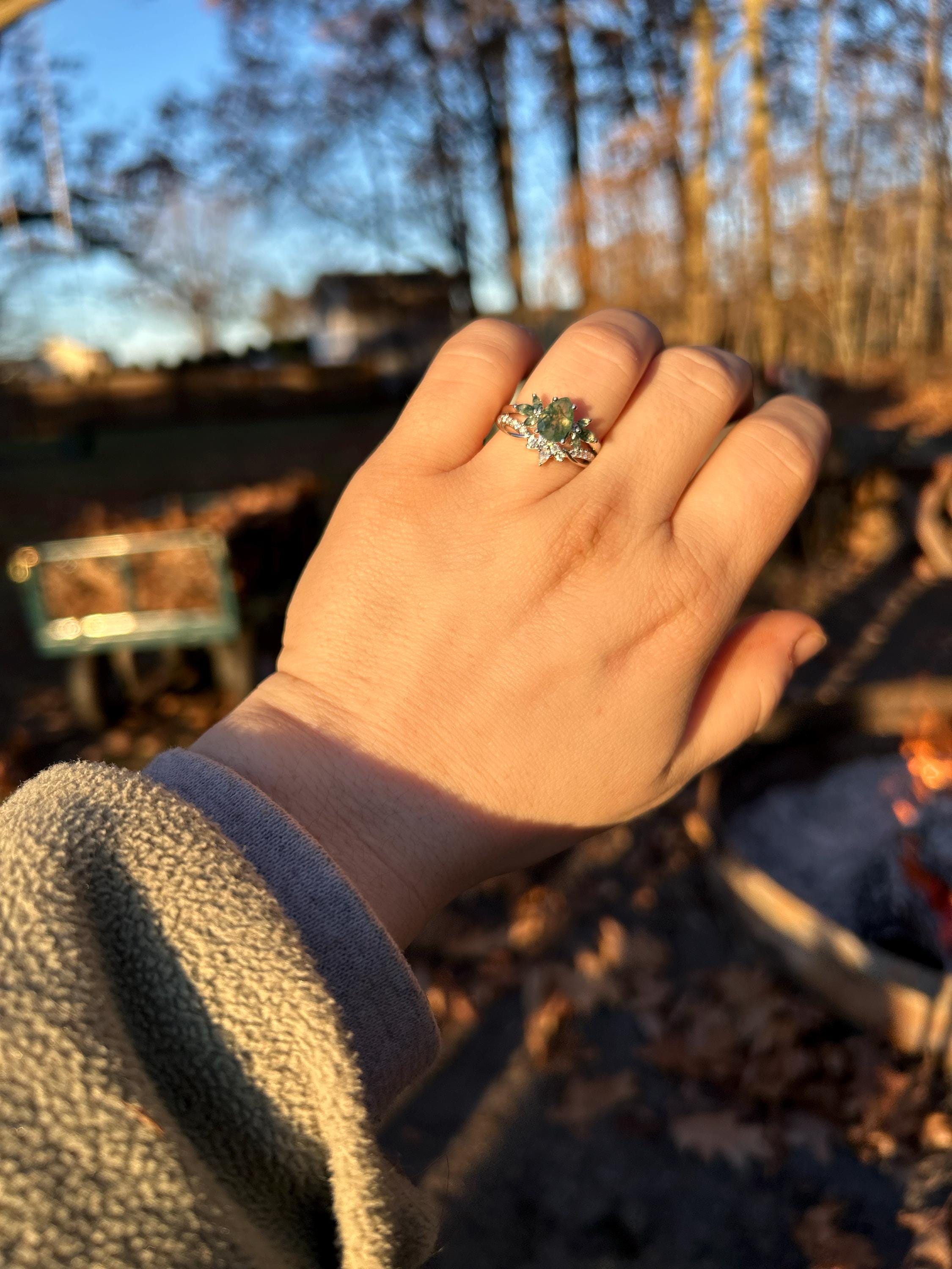 Pear shaped Moss agate Engagement ring set Vintage Rose gold Bridal ring set Pear cut Moissanite wedding ring set Women Promise ring set