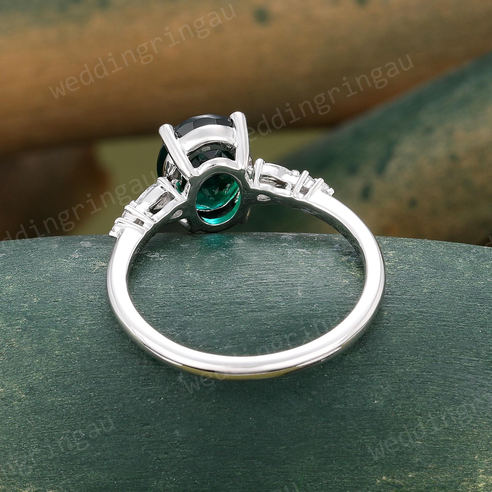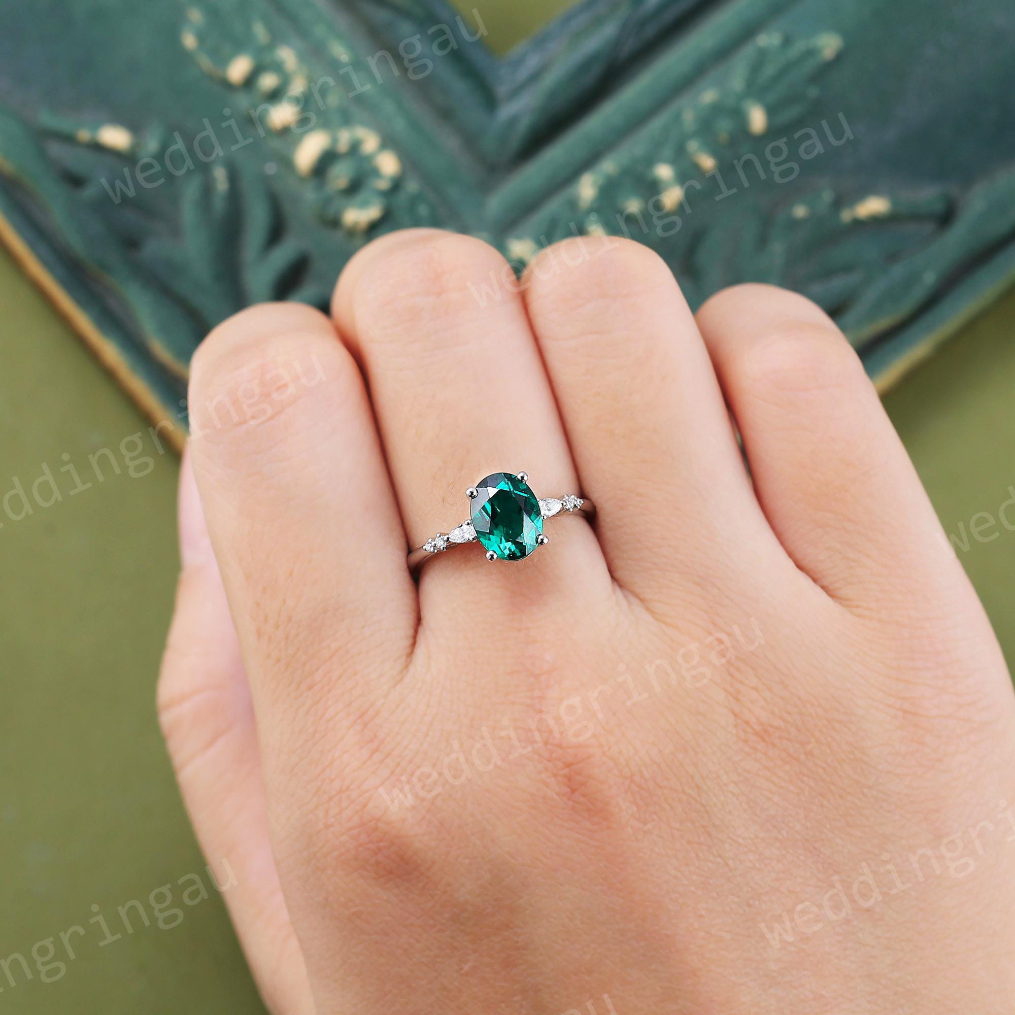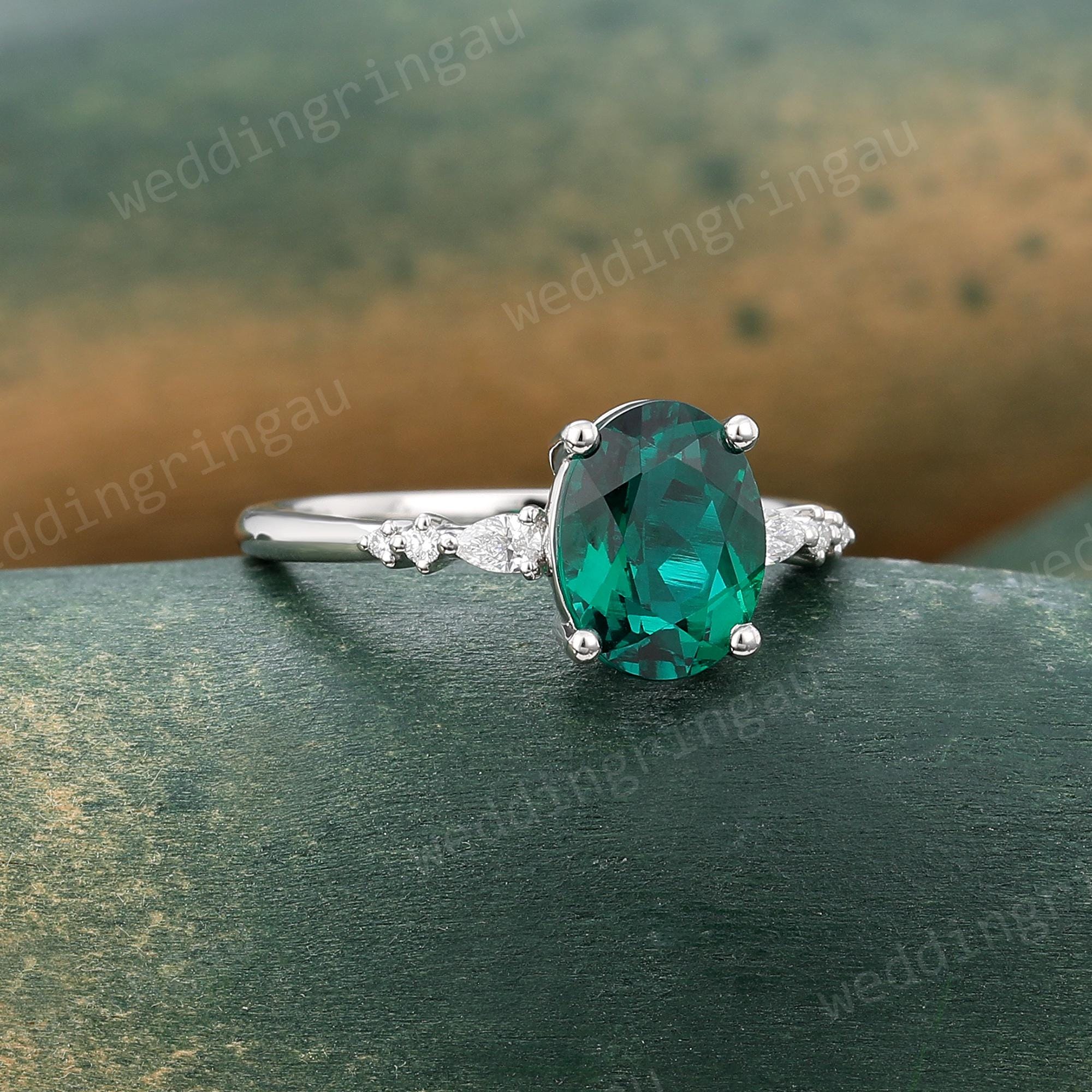Oval Cut Emerald Engagement Ring Vintage Sterling Silver Pear Moissanite Unique Wedding Anniversary Ring May Birthstone Ring Jewelry