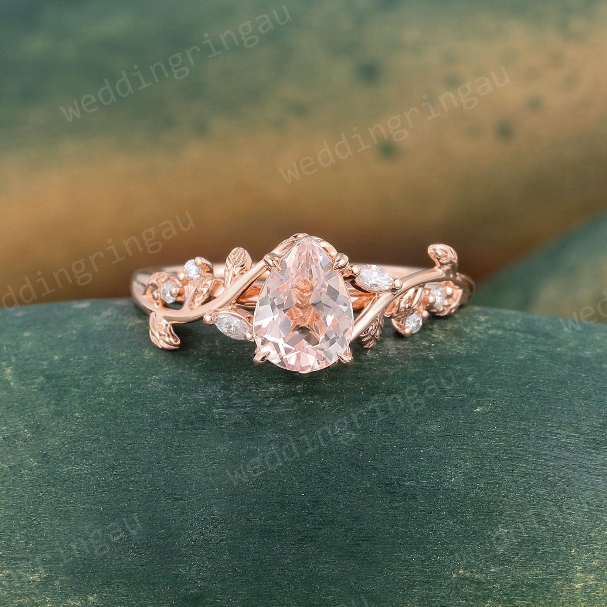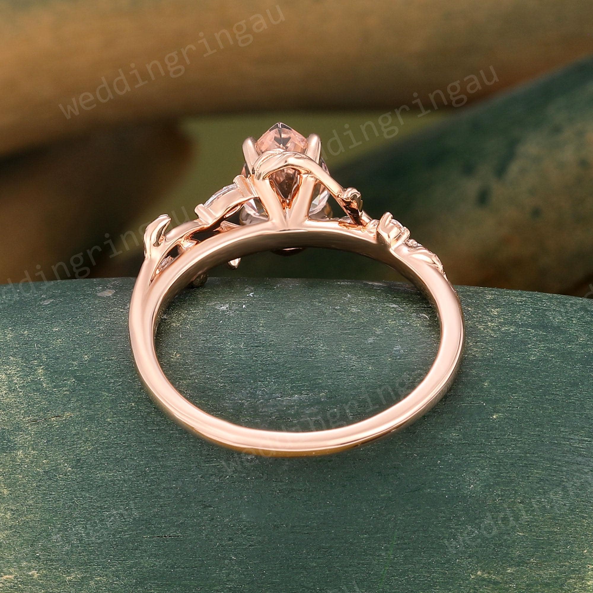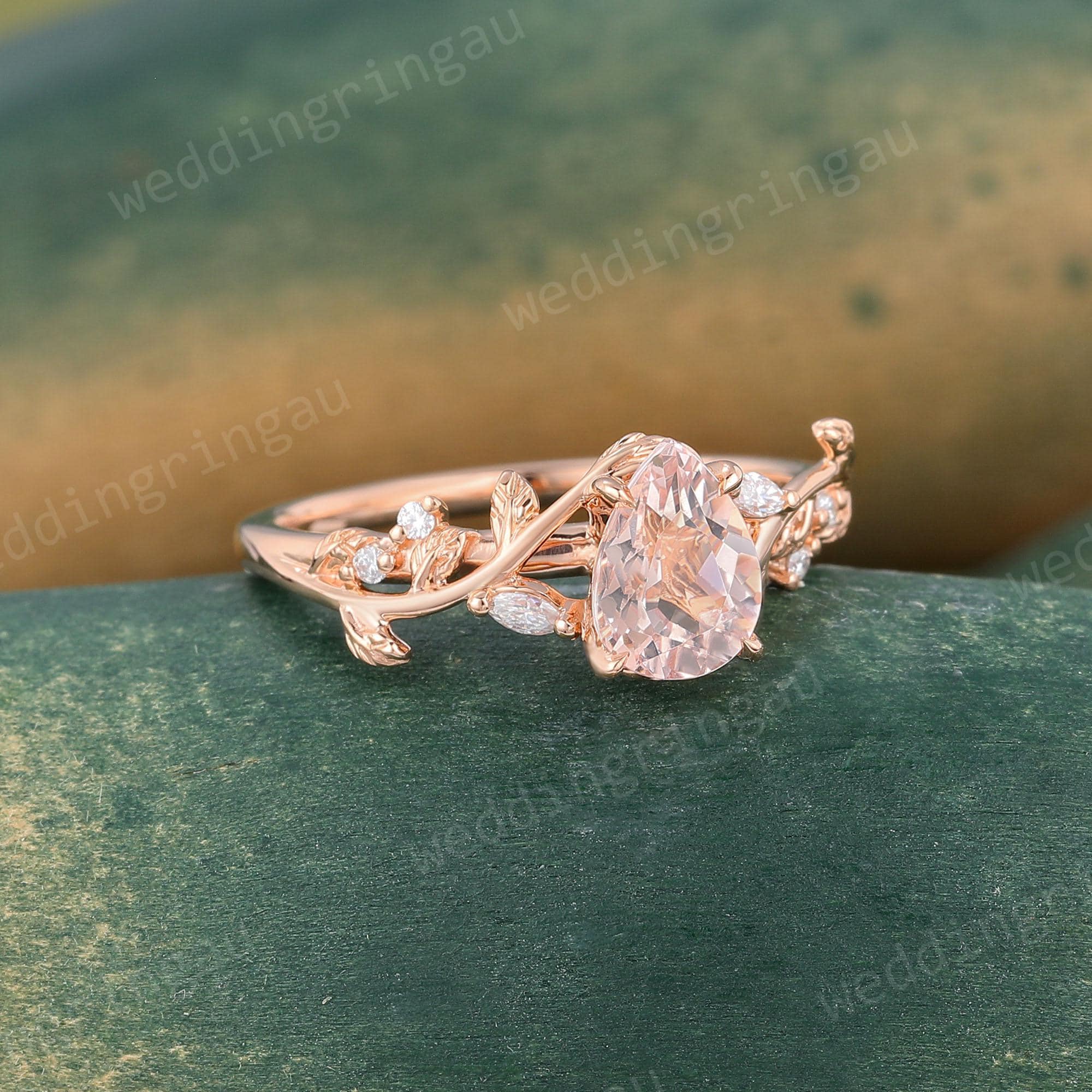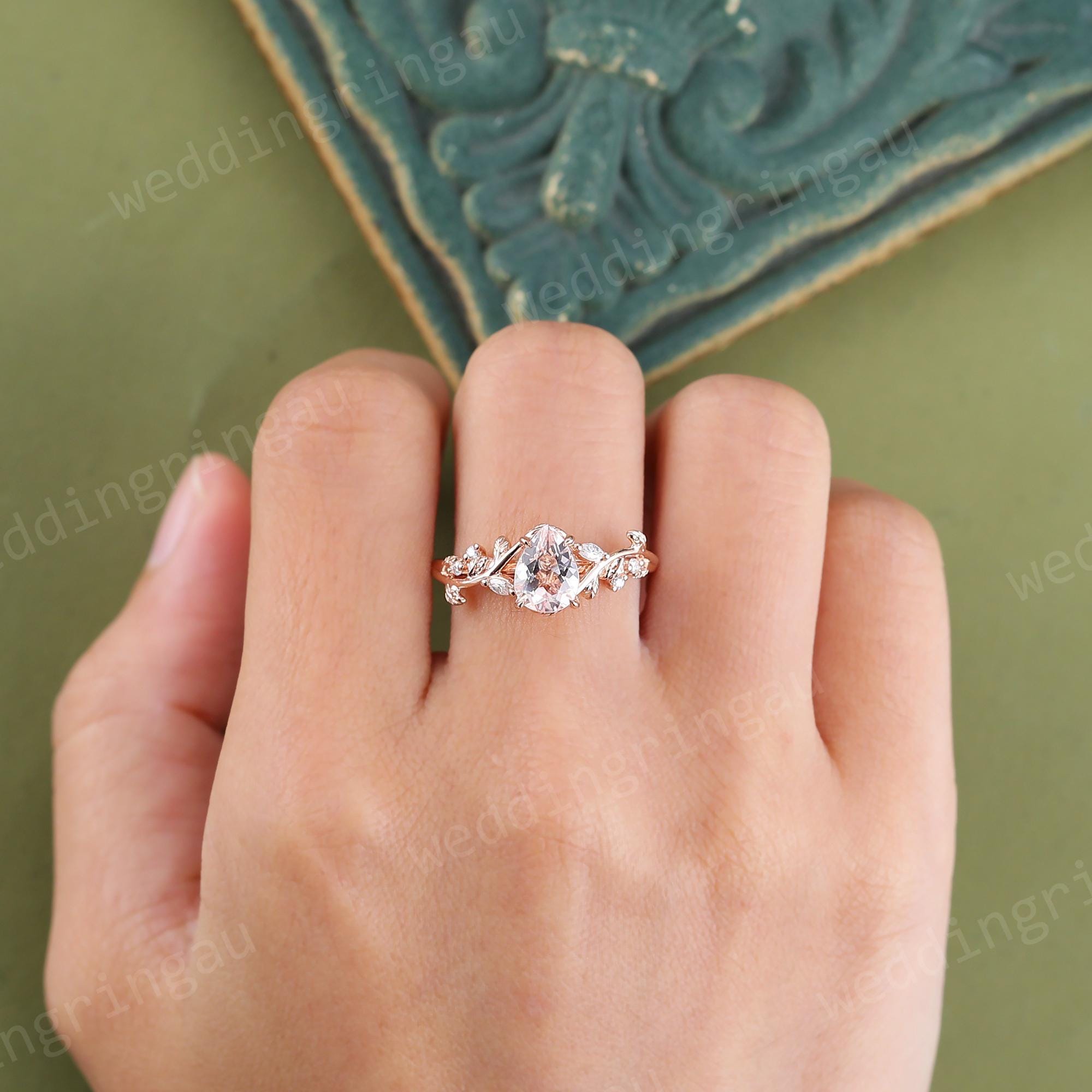Pear Shaped Orange Pink Morganite Engagement Ring Dainty Rose Gold Marquise Cut Leaf Twig Moissanite Wedding Ring Promise Anniversary Ring
