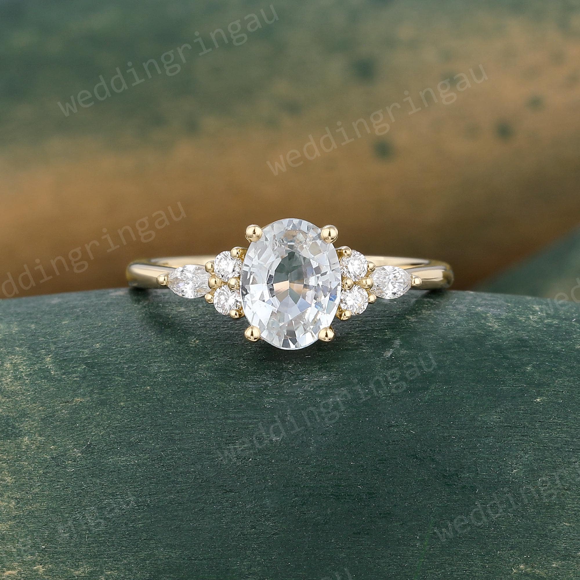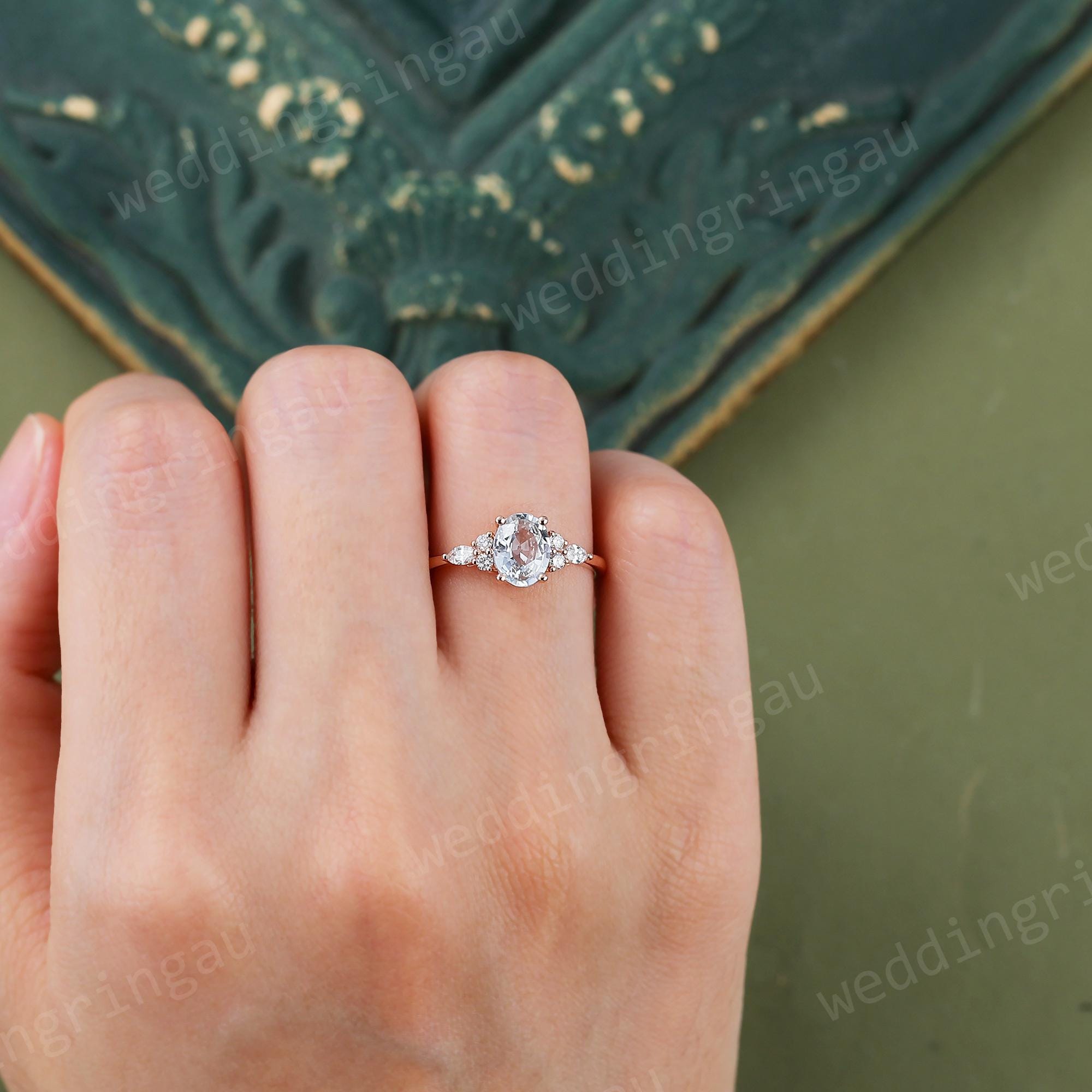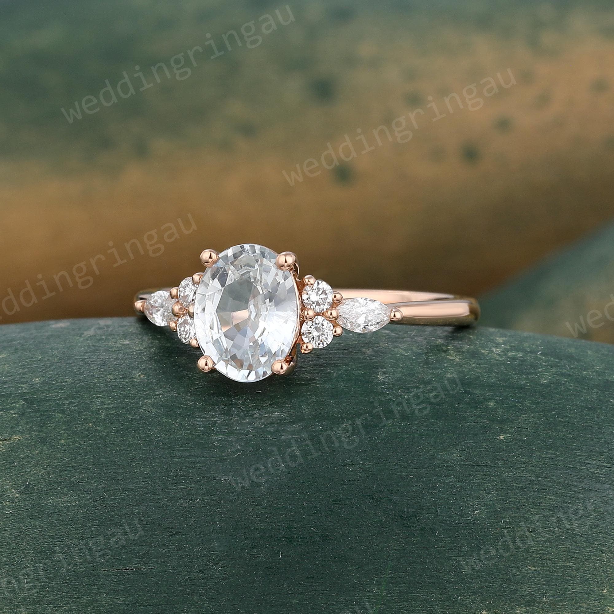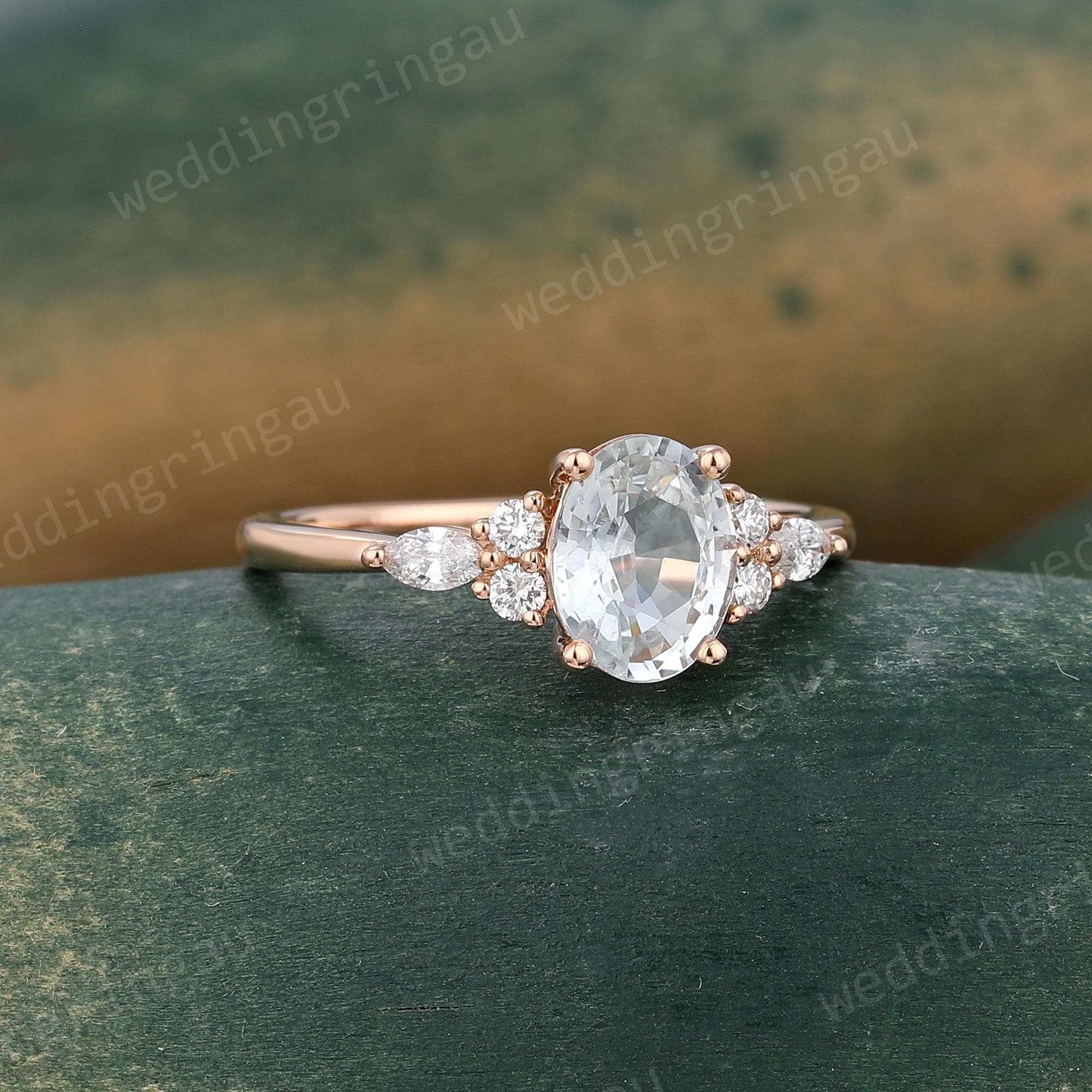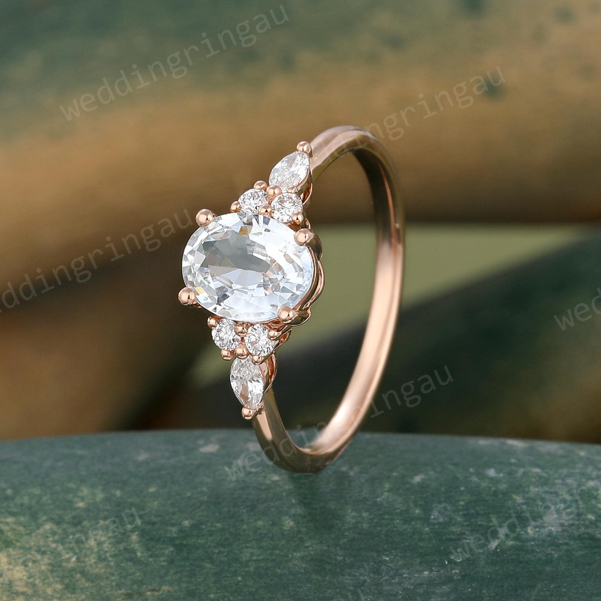 Unique Oval Cut White Sapphire Engagement Ring Rose Gold Marquise Diamond Delicate Wedding Cluster Bridal Promise Anniversary Ring for Women