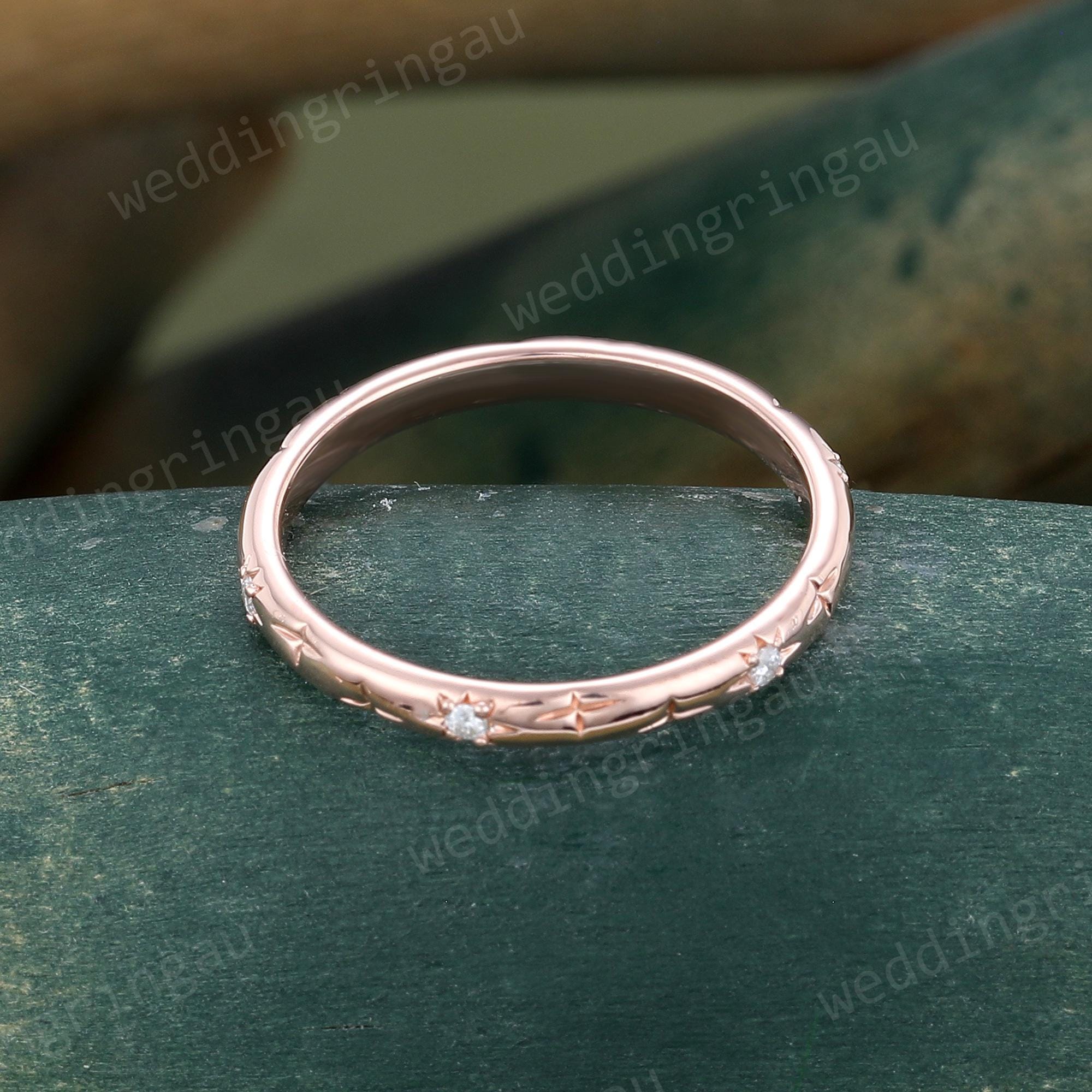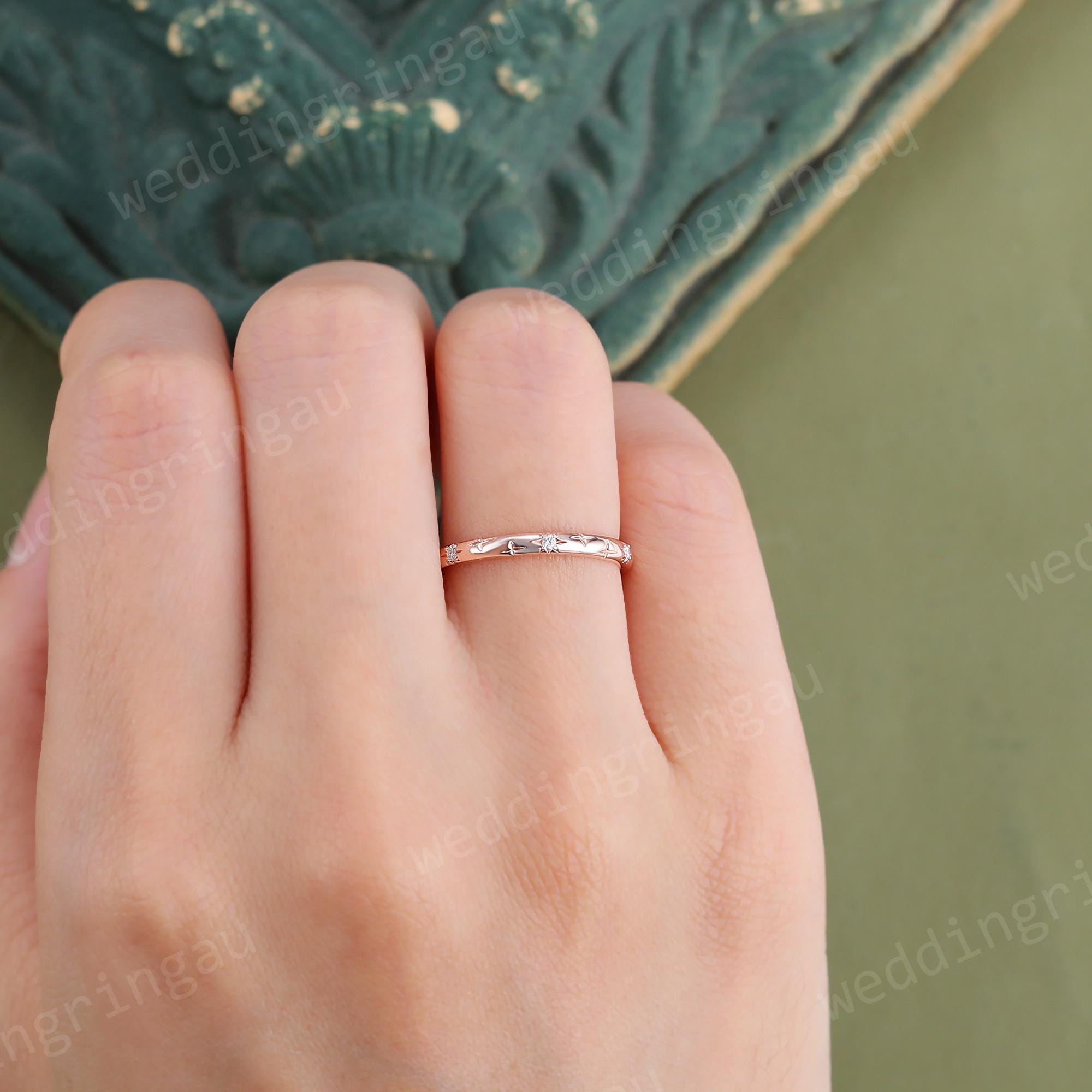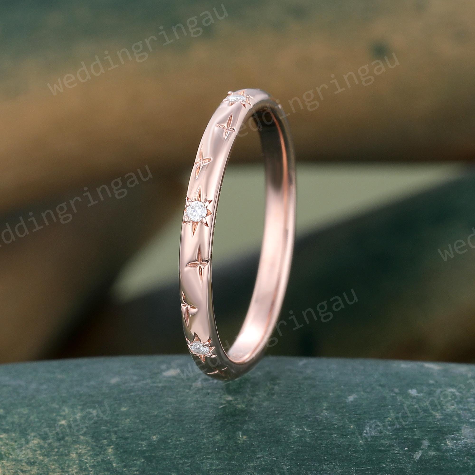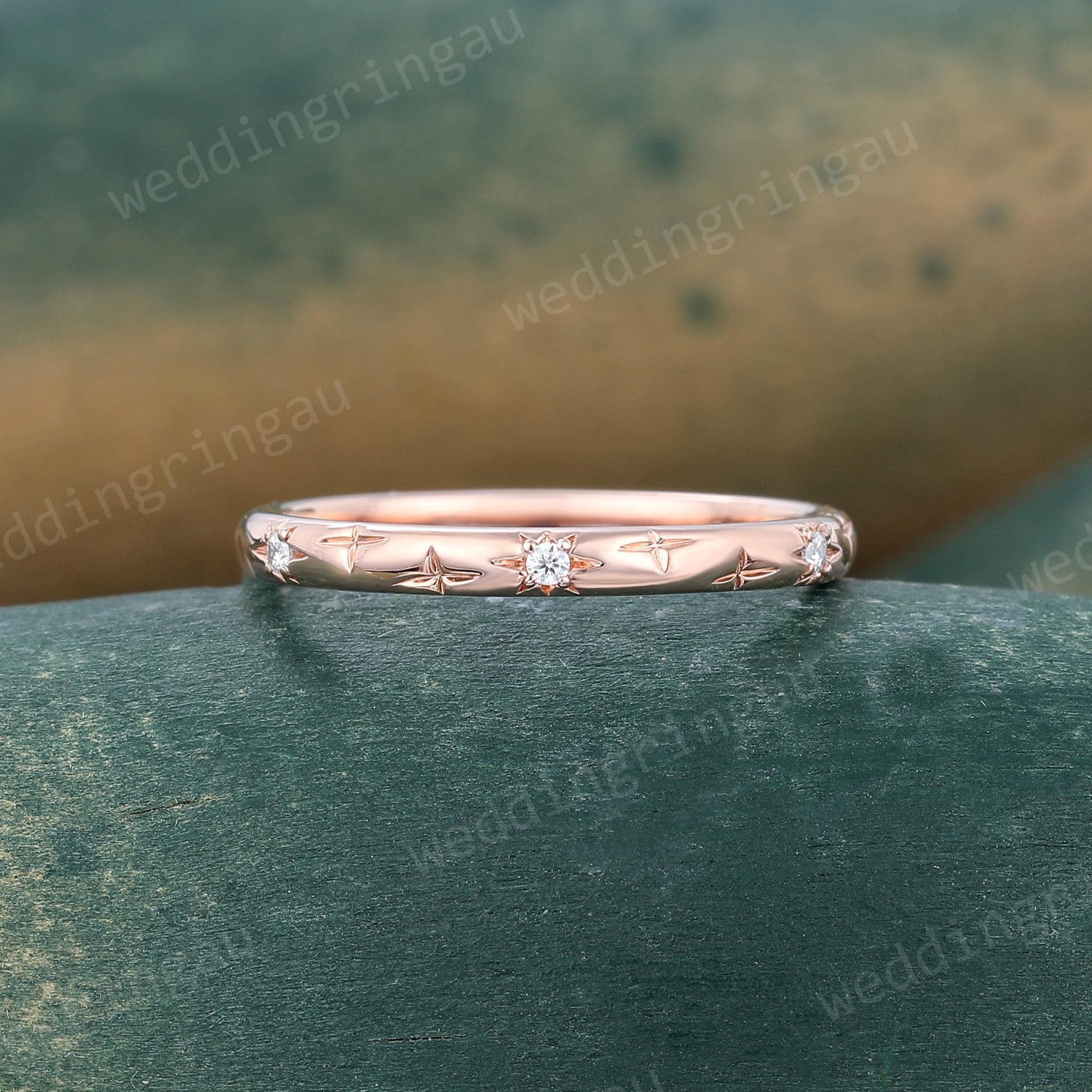 Starburst Round Diamond Wedding Band Dainty Minimalist Rose Gold Celestial Ring Stacking Matching Band Promise Anniversary Ring Gift