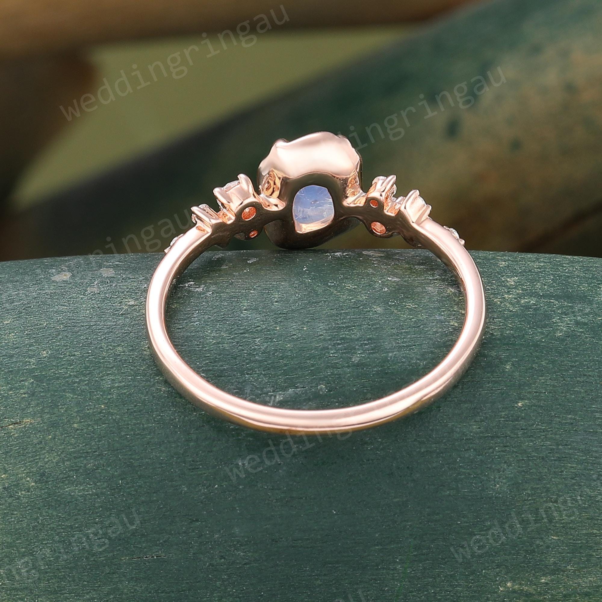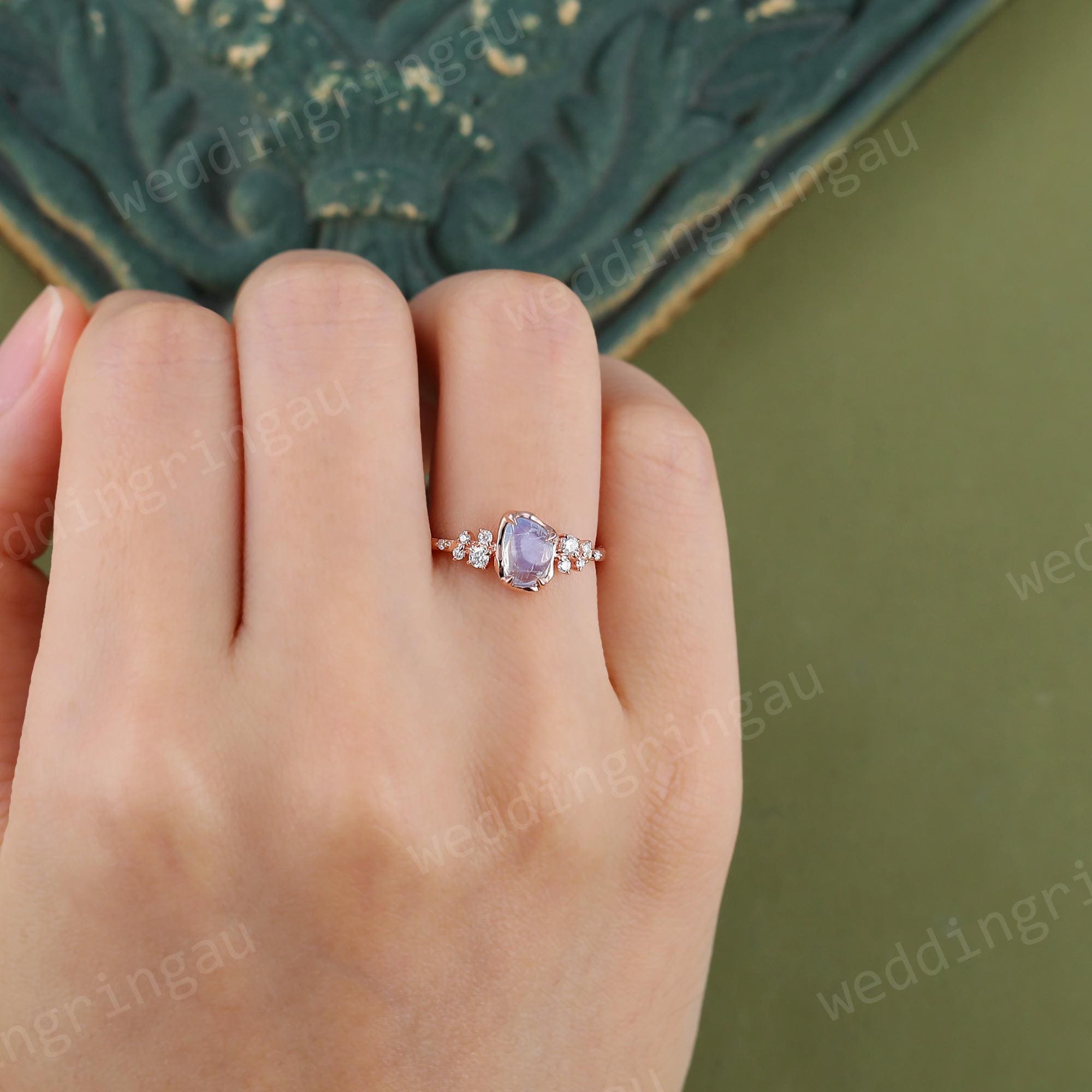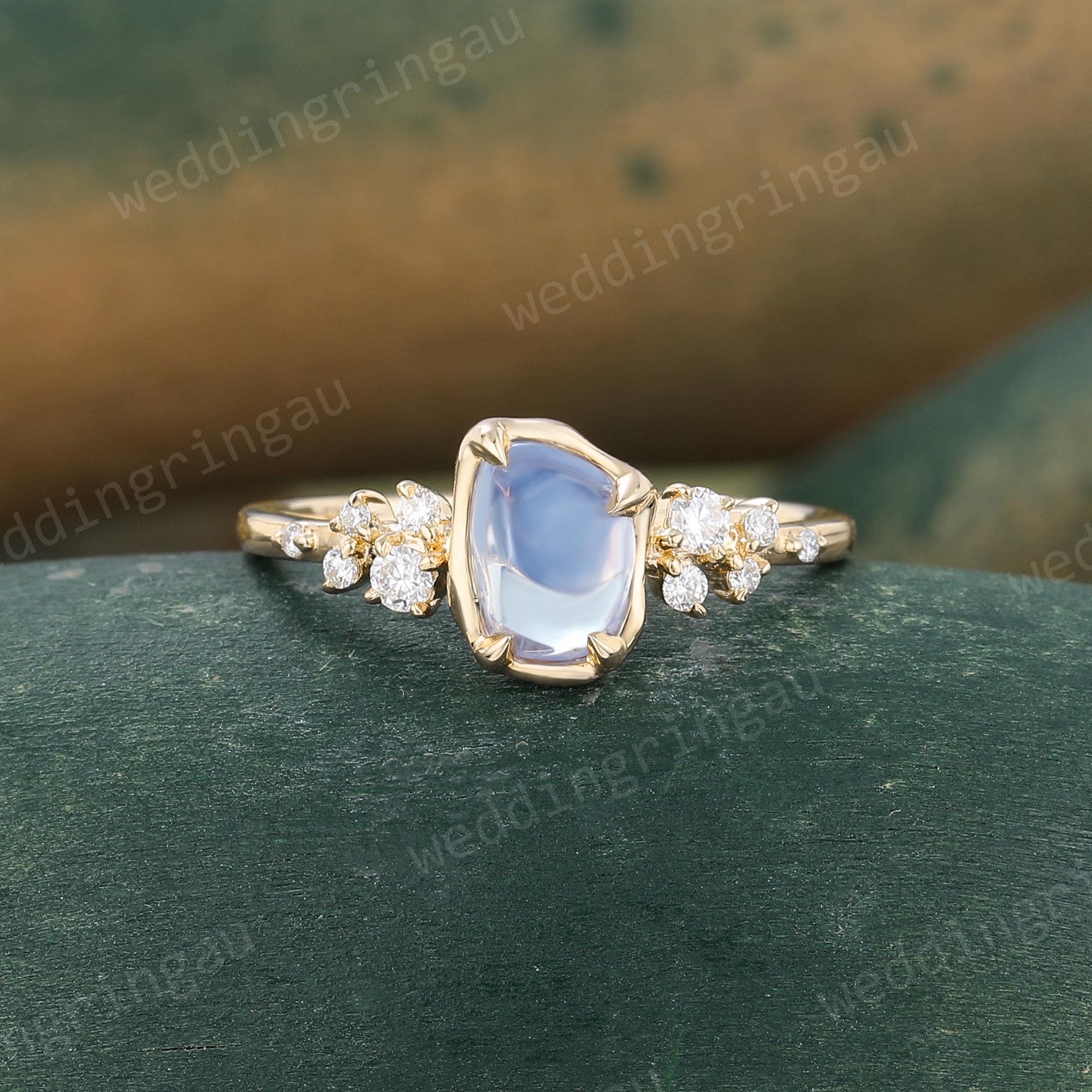 Irregular Cut Raw Sapphire Ring Unique Shaped Engagement Ring Rose Gold Moissanite Cluster Wedding Promise Ring Art Deco Ring Gift for Her